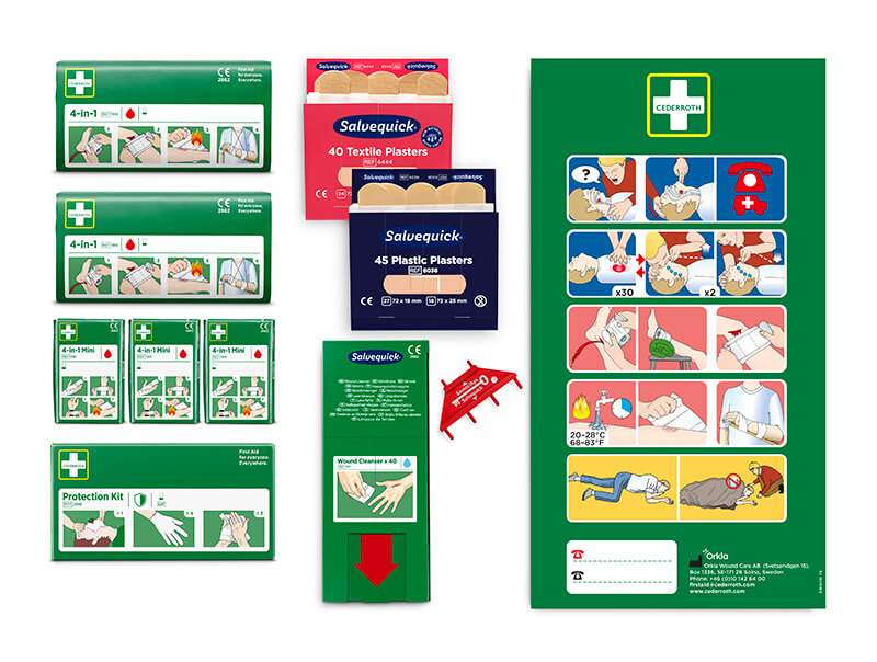 Cederroth navulpakket bij Wound Care Dispenser bevat een complete set navullingen bij Wound Care Dispenser (REF 51011006).