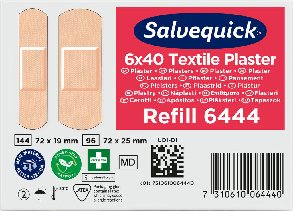 Elke navulling bevat 40 pleisters (24 st. 72 x 19 mm en 16 st. 72 x 25 mm)