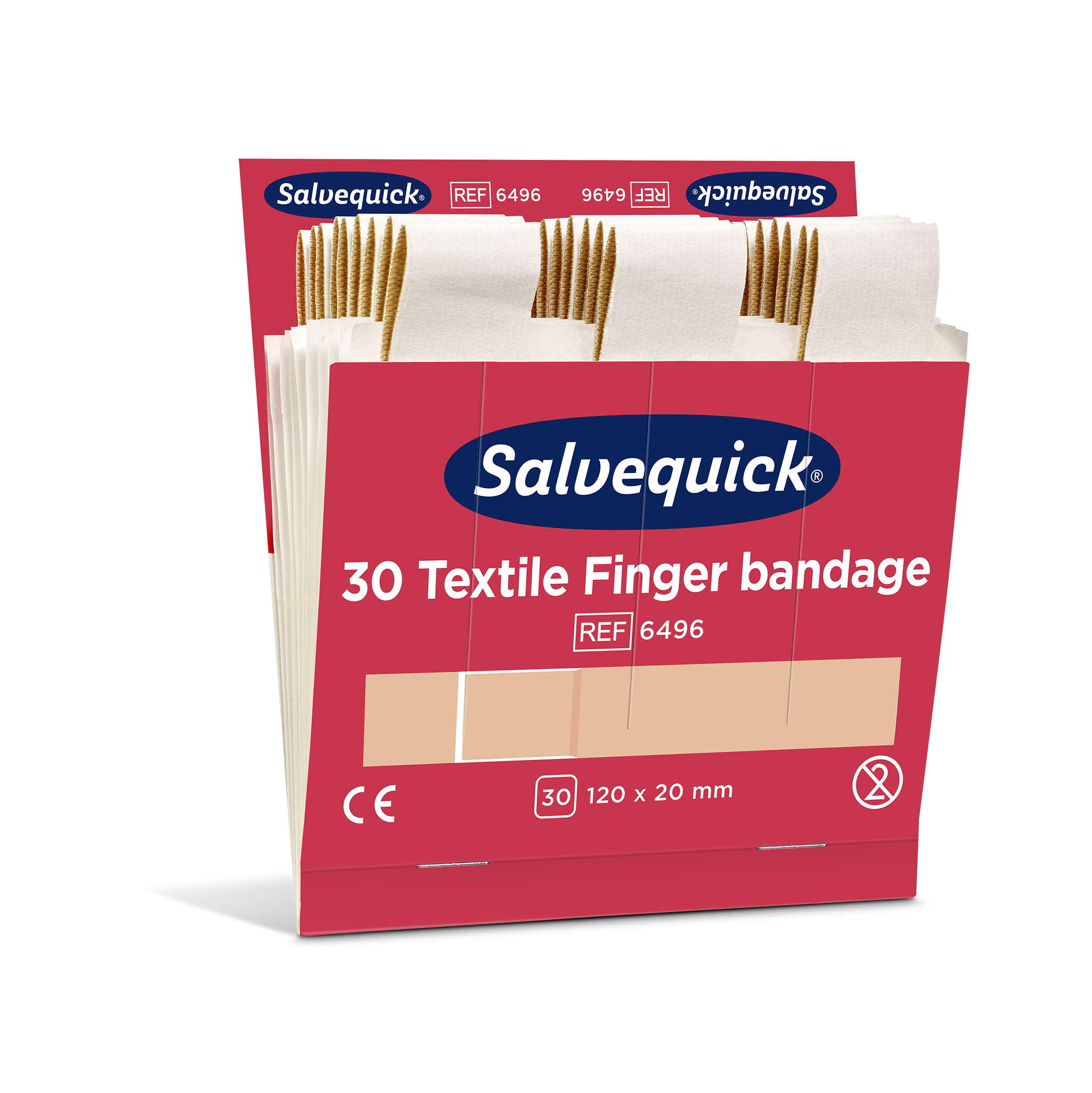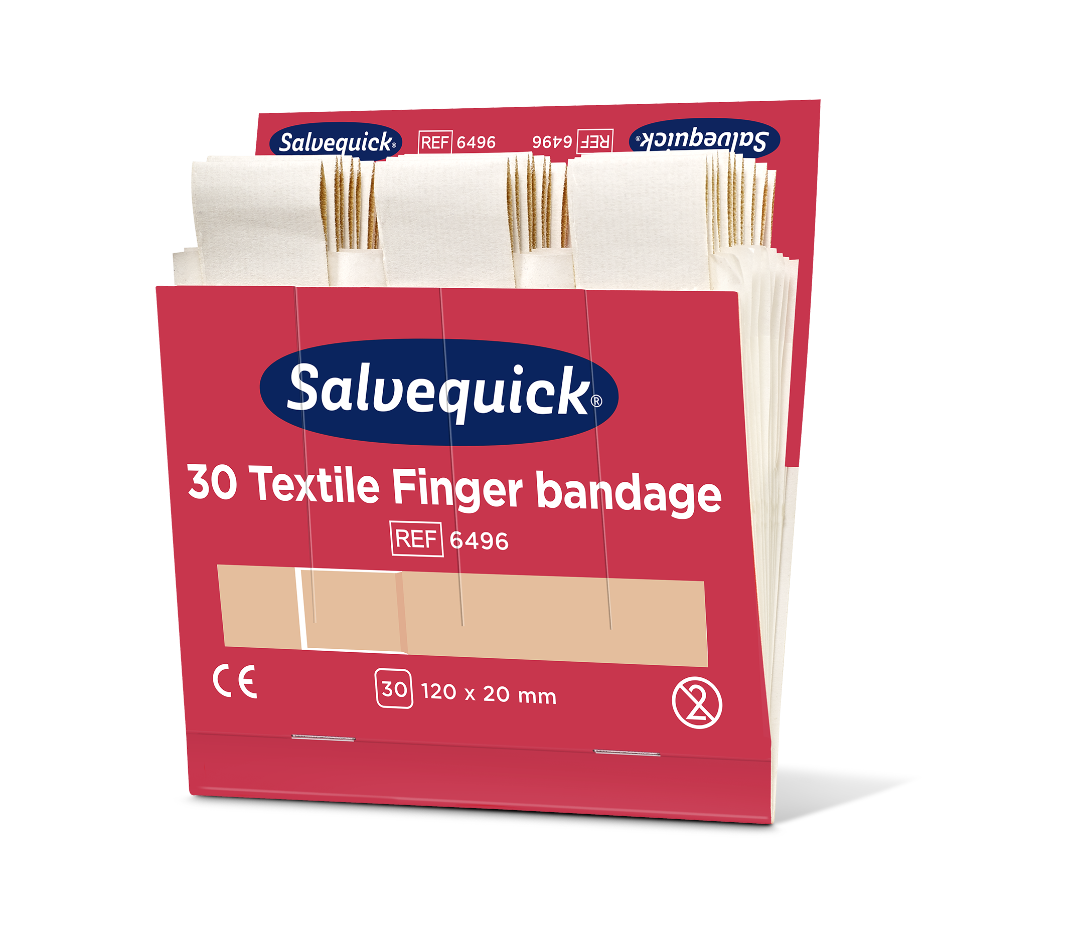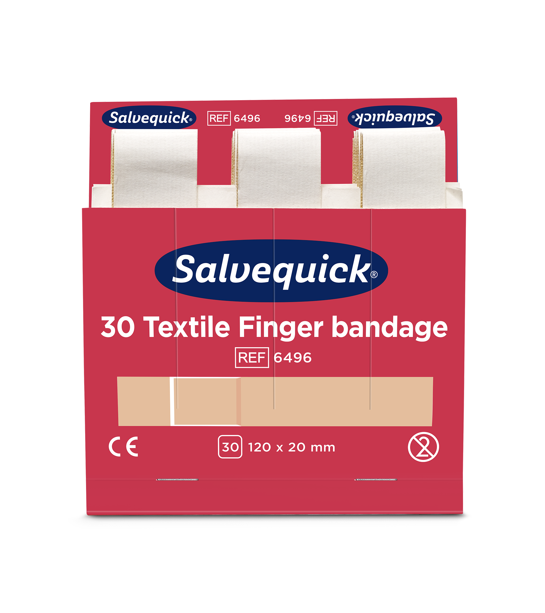 Salvequick Textile Finger Bandage zijn extra lange textielpleisters, zacht en flexibel. Gemakkelijk rond een vinger te winden en voor lastiger te bereiken plaatsen. Maak de wond schoon, let erop dat deze niet geïnfecteerd is en vervang de pleister iedere dag.